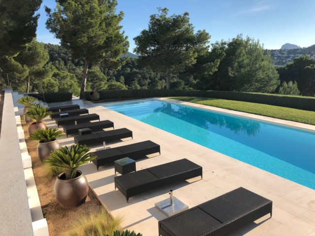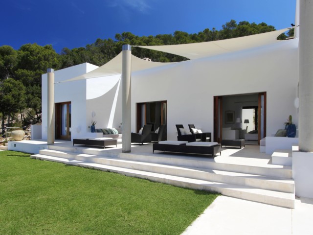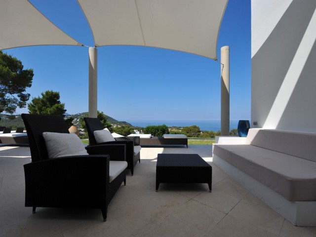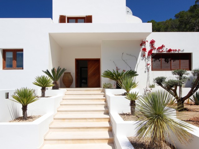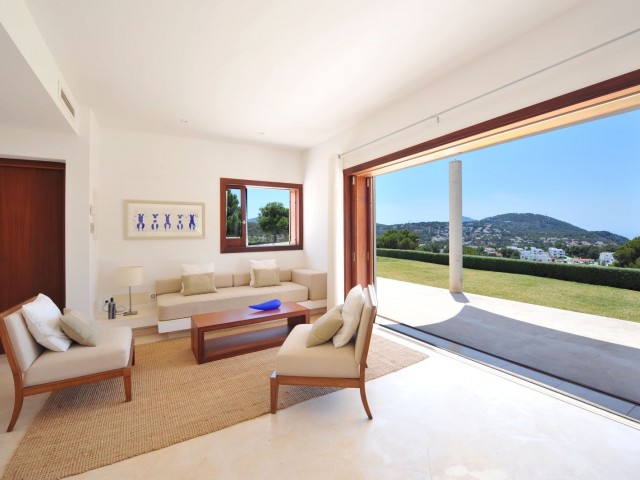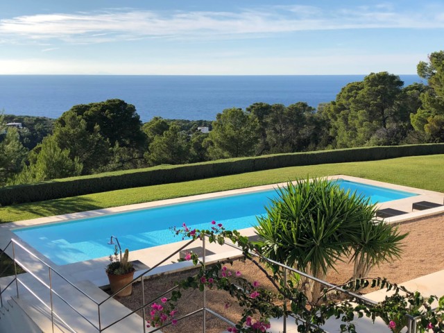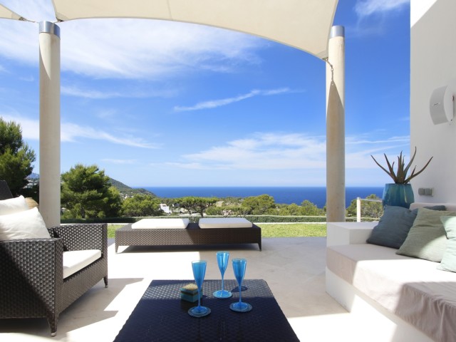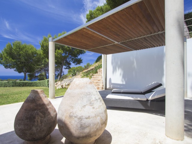 Modern villa with stunning views, set high on the cliffs near Cala Vadella.