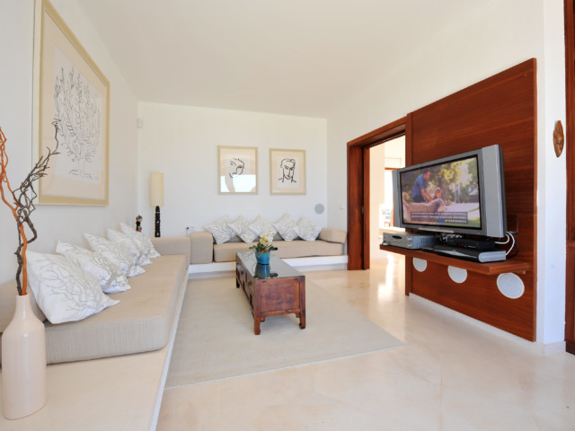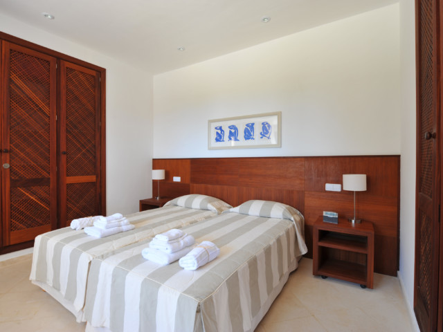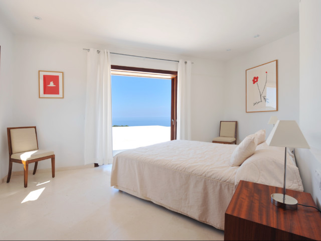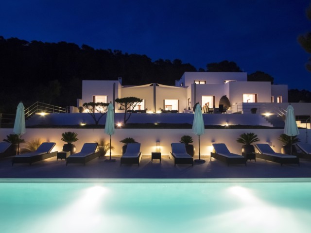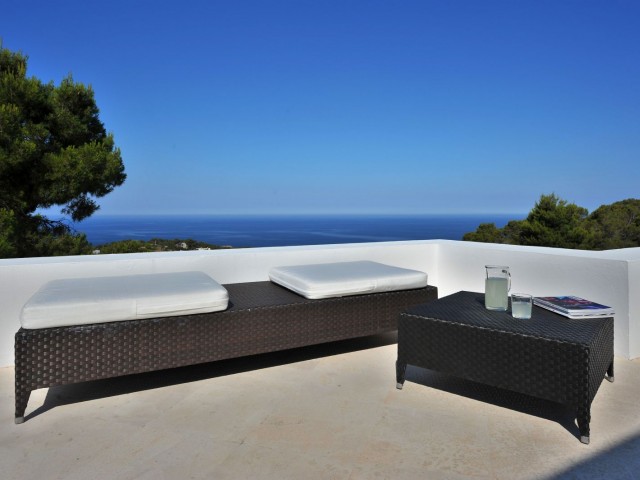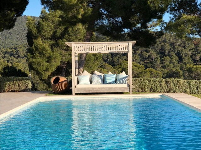 If you want to entertain in style with many varied areas to make the most of, then this is the villa for you. It is decorated in a very chic but natural style and is more than comfortable; with two guesthouses, you can be sure of privacy for yourself and your friends. Outside there is the wonderful pool where you can all soak up the suns' rays and take in the view towards Cala Vadella.