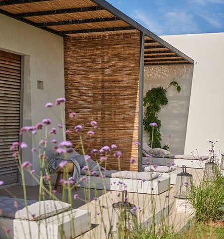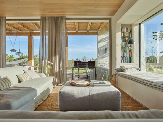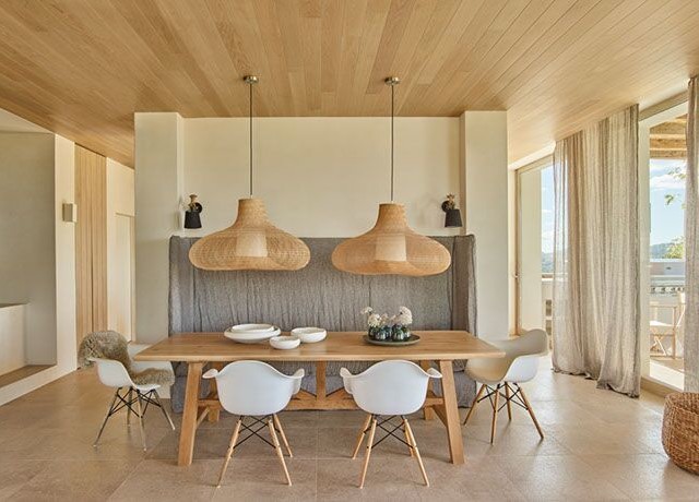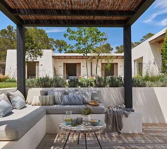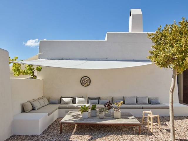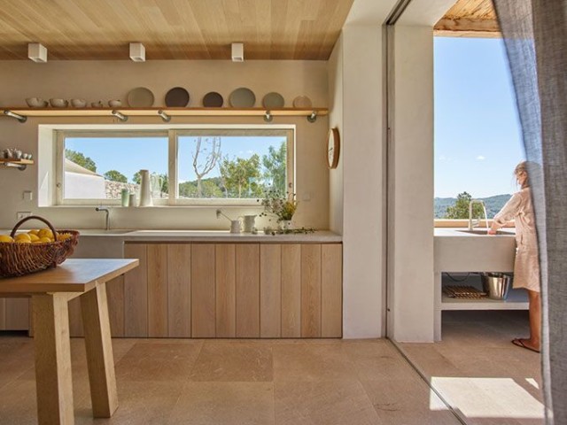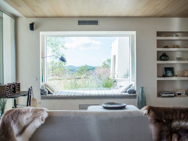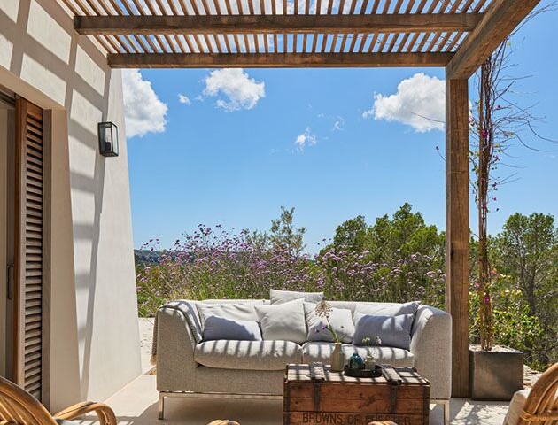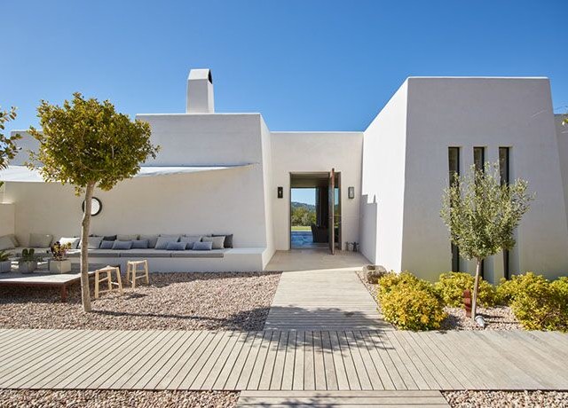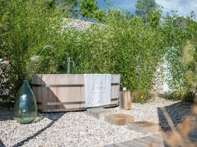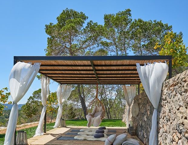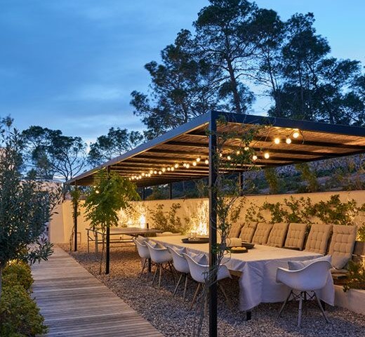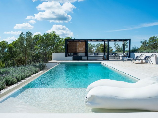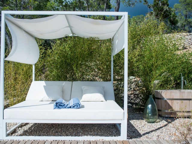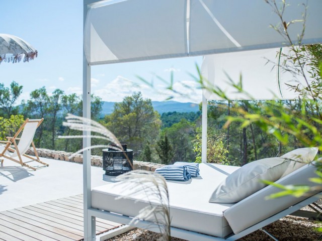 Perched on the top of the hill surrounded by terraces of lavender, olive. lemon and fig trees. Can Lavanda has no neighbours and has views across the island, including the sea in the distance. The house flows seamlessly between indoor and outdoor living, with an outdoor kitchen, two outdoor dining areas and several outdoor seating areas. The house sleeps ten adults and two children all in ensuite bedrooms. There is air conditioning and underfloor heating throughout the house, as an additional benefit pool can be heated upon request. For ultimate retreat sensation there is also a Yurt that can be used for yoga or gathering.