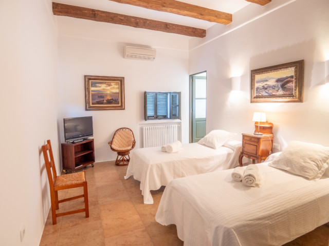 - Master bedroom (twins as a double) with open pland en-suite (jacuzzi bath & shower) on the ground floor opening onto the front covered terrace